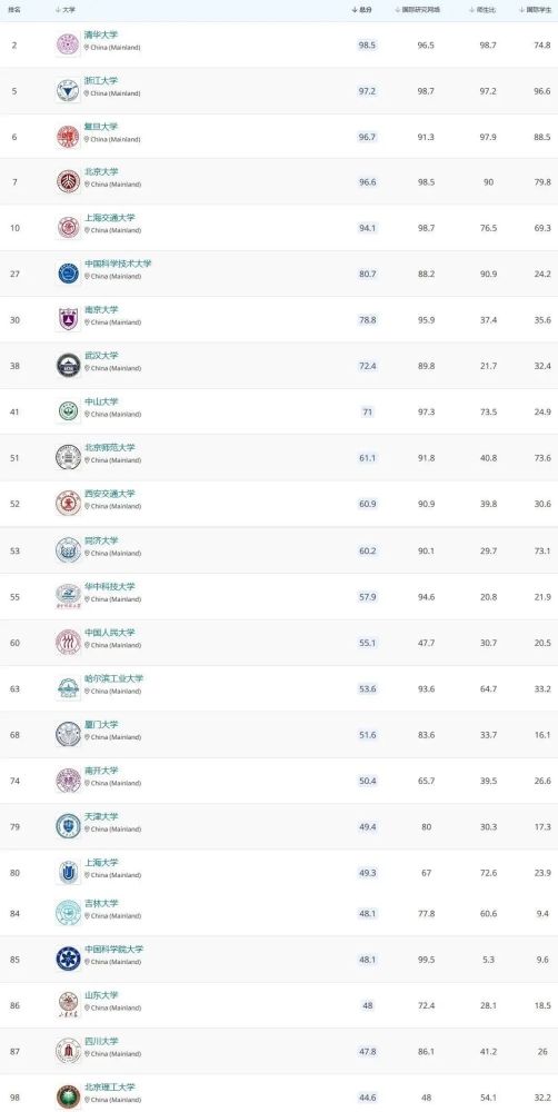 中国大陆高校表现如何?